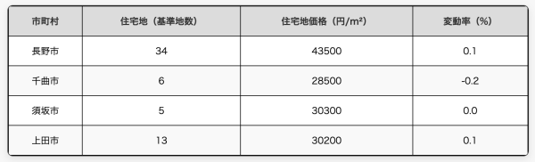 令和7年地価調査「市町村別•用途別平均価格及び変動率一覧表(長野県発表)をもとに作成」